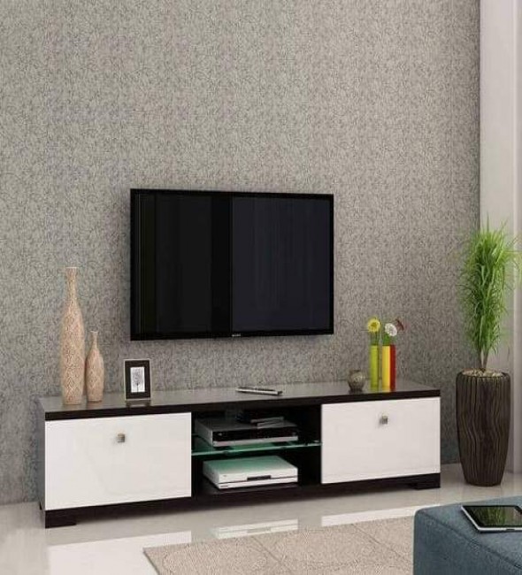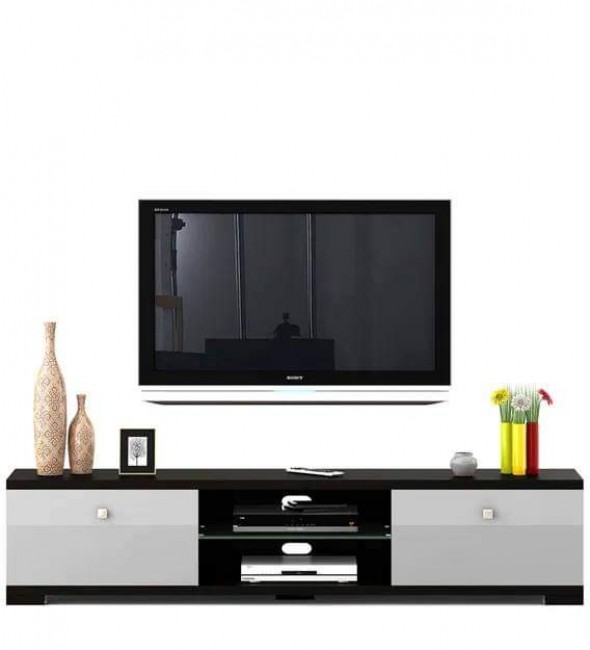 Floor Mounted Tv Unit Black And White Glossy