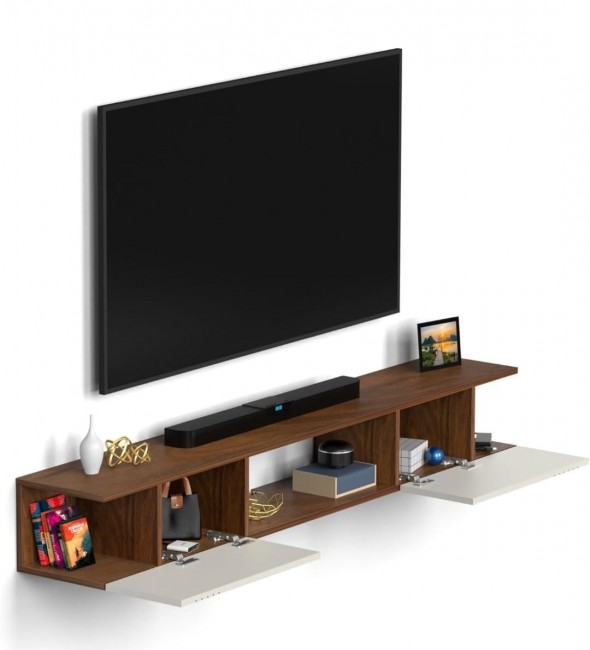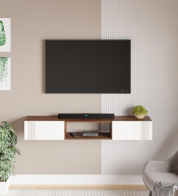 This simple and stylish wall mounted tv unit can enhance the beauty of your living room. This is made of high quality laminated sheet and ensure durability y strength.Customisation of this product is available.