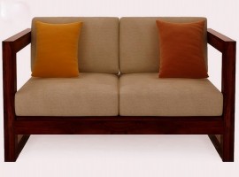 This contemporary looking wooden sofa is rich in style and comfort.Wooden frames is made of mahogany wood. Cushions are comfy and are easily detachable.Polish and cushion color can be of your choice.Dimensions(Inch) -